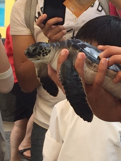 そのお披露目会に行ってました。ウミガメの赤ちゃんが泳いでるのにデレデレしてたら
