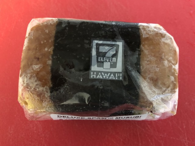 こちらハワイはワイキキ、ビーチウォーク沿いのセブンイレブン。お目当はナンバーワンと名高いスパムむすび。本日はデラックス=スクランブルエッグ入りを購入。ナチュラルな味付け、ほんのり香る海苔の香り。確かに...