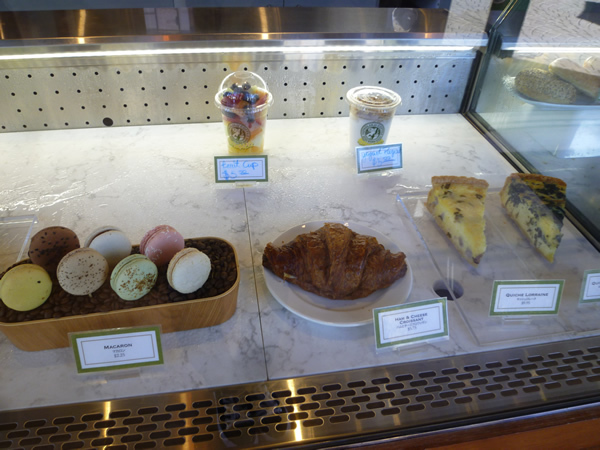 スイーツ類はこんな感じ。これはショーケースにある限りはオーダー可能なんじゃないかな?パンケーキは最初、レジの店員さんは3時前だし大丈夫よーんって感じだったんだけど、途中でキッチンまで確認に行ってくれて、それでキッチンの人に断られてしまったような感じでした。クロワッサンなどなど。現地の方のブログによると美味しいらしいです。でもクロワッサンは日本でも食べられるので今回はパス。