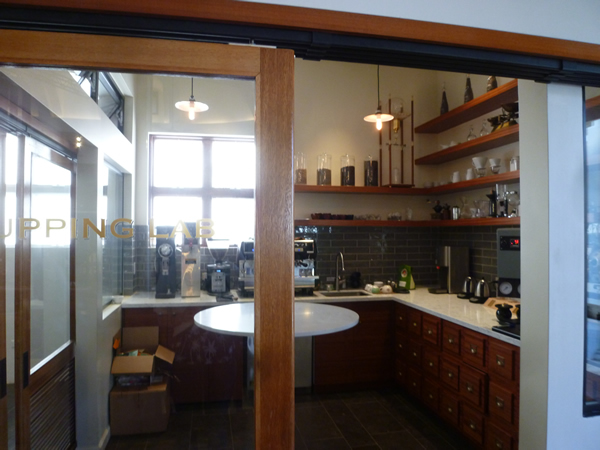 知人がサンドイッチを食べている間に、ドリンク片手に私は店内を散策。ここはカッピングの体験が出来るスペース。予約制らしいです。カッピングとは、コーヒーの香りと味(甘味、酸味、苦味等)、口に残る余韻等を参考に、総合的にコーヒー豆の品質の判断をする事なんだそう。つまりワインのテイスティングのようなものですね。コーヒー豆の買い付けに関する重要な判断材料になる為、慎重に行われます。