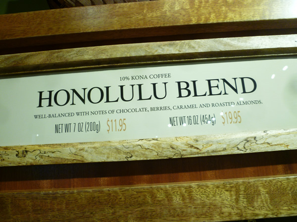 HONOLULU BLEND。コーヒーにあまり詳しくなくても、こういうハワイらしいネーミングがついていると、つい選びたくなってしまいます。