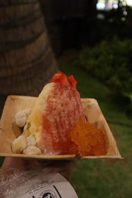 ロイヤルハワイアンセンター前にあるかき氷屋さん。行列が絶えない人気店です。屋台なのにキャッシュレス、現金は使えません。少し並んでアサイーとマンゴーのかき氷を注文。これが本当に甘すぎずに美味しい。写真は...
