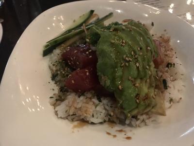 メニューはいろいろありましたがステーキとアヒポキを注文しました。味もボリュームもほどほどといった感じでした。