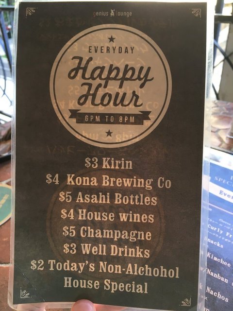最後に今回はホクラニ・ワイキキのすぐ近く、日本人シェフがつくるハワイアン料理を楽しめるジーニアス・ラウンジのハッピーアワーに行ってきました。