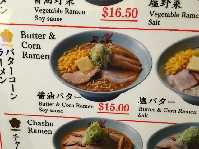 醤油バターラーメンが15ドル!