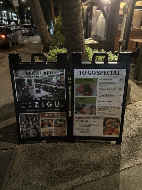 ハワイの食材に拘り、日本風に調理した創作和食で、ハワイ滞在中のステーキやハンバーガー、パンケーキなどジャンキーな食事が多い中、合間にZIGUさんの創作和食を挟むのも良いかもしれません。