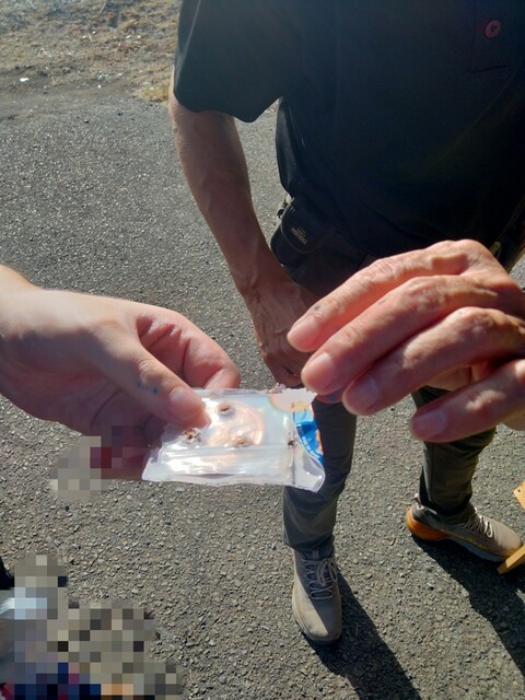 息子が撃ち抜いたメダル☆シューティング後にナカイさんがカッコいいナイフで切り取って下さいました♫