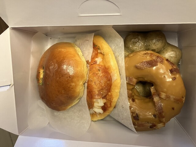 入口はテイクアウト出来るパンがショーケースにズラっと並んでいます。ドーナツやマラサダもあるので、おやつに良さそう。
