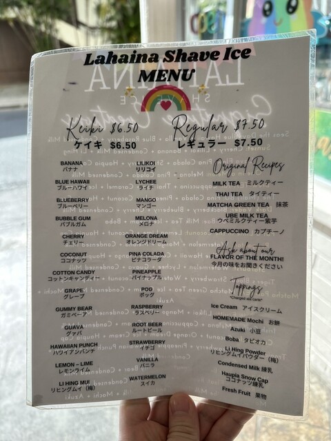 シェイブアイスのフレーバーは約30種類て豊富で、ハワイの定番から、バブルガム、コットンキャンディなどの代わりフレーバーなどもあります。