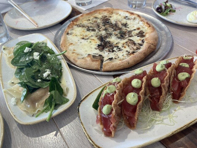 appetizerは海鮮以外は半額、ピザもかなり安く食べられます。