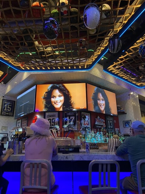 こちらはスポーツバーのようで、たくさんのモニターでスポーツの試合が放映されています。この日はバスケットボールがメインだったでしょうか。