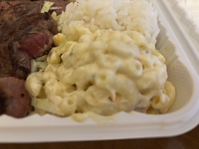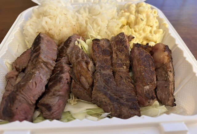 とても有名で何店舗かあるステーキテイクアウトのお店です。アラモアナにもあったでしょうか?ロイヤルハワイアンの店舗でテイクアウトしました。当たり前というか、やはりグリルは持ち帰ると硬くなり、味は損なわれ...