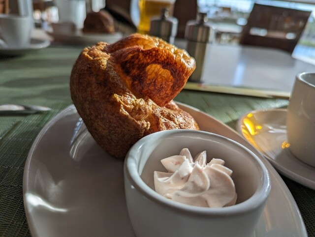 こちらと言えば、やはりポップオーバー。ランチでは、席に着いたらチキンスープとともにすぐ出てきました。
