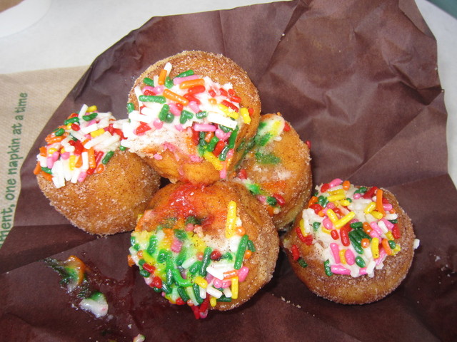 「シナスウィーティース」は、一口サイズのまん丸ドーナツでカラースプレーのトッピングあり。