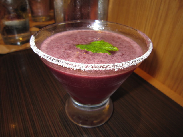 アメリアは、グラスの縁に砂糖がついていて、ブルーベリー入り。