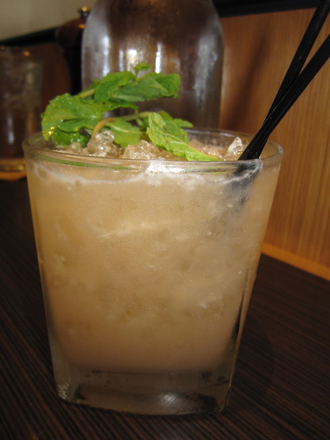 フロール・デ・カーニャのラム、アンチョ・レイエス、蜂蜜、フレッシュレモン汁、コーヒービター、卵白