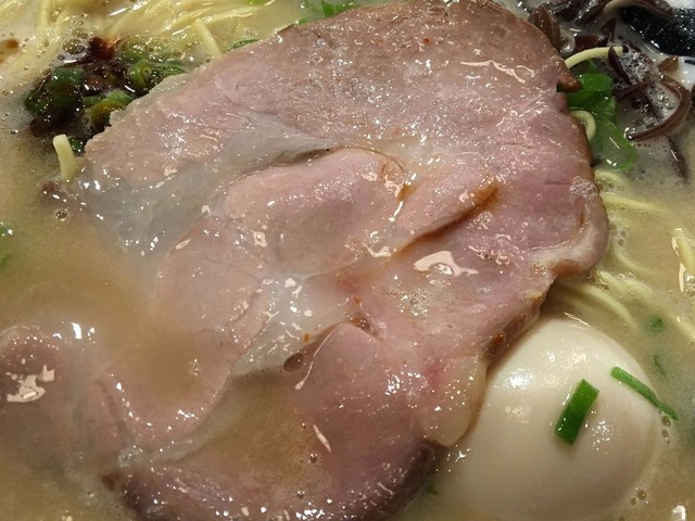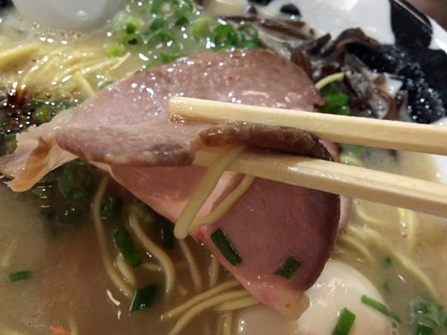 とろみのあるとんこつスープにレア目な肩ロースのチャーシュー、