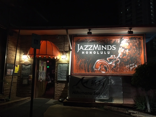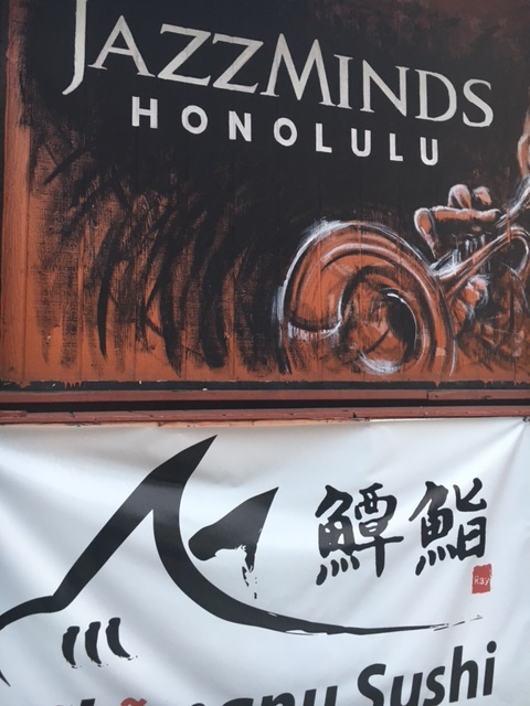 金曜日の7時前にお店に到着するとJAZZの看板の下にSUSHIのサインが・・・