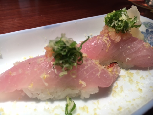 ほとんどのお寿司にネギが乗っていて、柑橘の皮おろして仕上げてました。