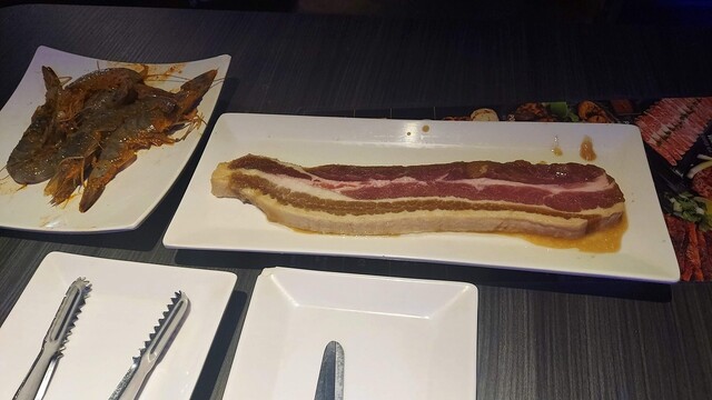 日本の焼き肉食べ放題に無いメニューとしては牛バラ肉が印象的。タレを絡めて焼くと牛丼になります(笑)白米かっ込む系。