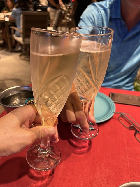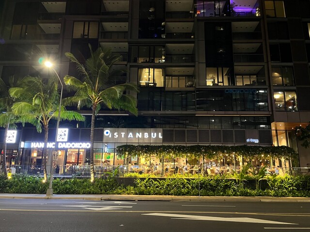 ガイド本を見て、新しくできて評判らしいこちらに行ってみることにして日本から予約。一日前に現地で予約時間を早めることを試みるも、満席で不可。結構人気らしい。当日はアラモアナセンターから15分ほど歩いて、結局定刻通りに現地到着。名前を告げると、入り口に最も近いテラスの2人がけテーブル席へ、若く美しい女子スタッフに案内される。注文したのは、看板料理らしいMEZE PLATTER($32)と、MEDITERRANEAN SALATA(¥15)、LAMB TENDERLOIN SHISH($36)。飲み物は最初スパークリング($15)で乾杯し、その後赤ワイン(¥14)に。日本人客は見えない。だからか、日本人対応はメニュー表記含め、ゼロ。この店はそもそも新しいので、日本人対応をほとんどしてこなかったのだろう。テラス席はその通りだが、海が見えるわけでもなく、道路を2階から見下ろすような席で、道路の向かい側はホールフーズ。横浜だとみなとみらいのマークイズあたりで食べてる感じか。