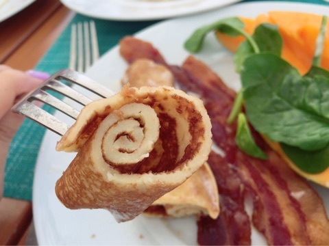 ビーチサイドのオープンエアーのテラス席で、静かなカハラビーチを眺めながら美味しいお食事をゆったりと。やっぱり夢のようですーーー。そしてこれがパンケーキなんです!