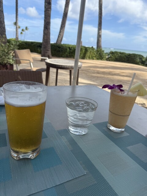 カハラホテルのプールサイドのレストランバーです。なんといってもカハラバーガーがお勧めです。けっこうボリュームが大きいので2人で1つでも十分。1人で1つ食べると晩御飯は食べれないかも。プールサイドでビー...