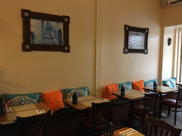 中にはいると、暖かく居心地の良いタイル張りの床や低照明と宝石調の色調が中東の雰囲気を醸し出しています。