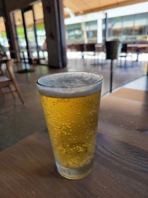 2人で入店し、まず入口でビールのハナコアブロンド(7.5ドル)と人気メニューのダックタコス(18ドル)をオーダー。そして奥のボックス席へと案内されました。