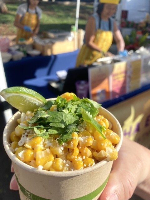 ⚫︎コーンサラダ専門店(Aloha Elote)は棒に刺したコーンorカップにつぶつぶ入れてもらう選択ができます。それにチーズやオリジナルの味付けがされており、新鮮なコーンを堪能できます^_^