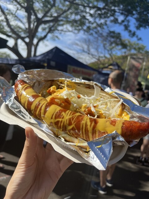 Kukui Sausage Saturdays at KCC Farmers Marketのホットドッグをいただきました!