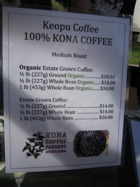 2013年の100%コナ・コーヒー(オーガニック)$18.00