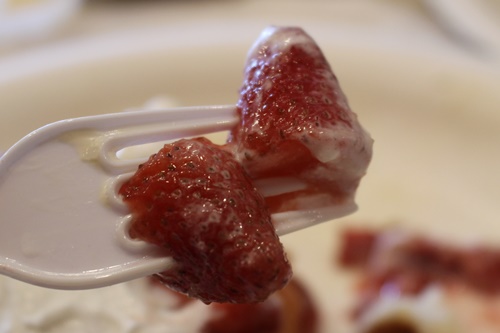 色鮮やかなイチゴがたっぷり 生ではないですね 煮崩れしない程度に甘く煮てあります
