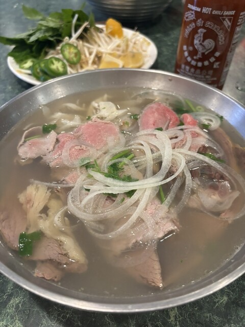 昔はちょくちょく来ていたフォーの美味しいお店です。今回何年振りかに来ました。予約無しで昼過ぎに到着したら最後の1テーブルが空いていてラッキー。フォーを各自一つずつと春巻きを注文。フォーにテーブルの上に...