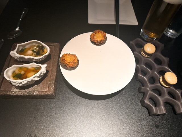 コース料理はシンプルな構成ですが、出汁を使ったり、香ばしく仕上げたり、日本人にも親しみやすい味でした。スペシャリテはブリオッシュの上に、キャリアやウニ、マ...