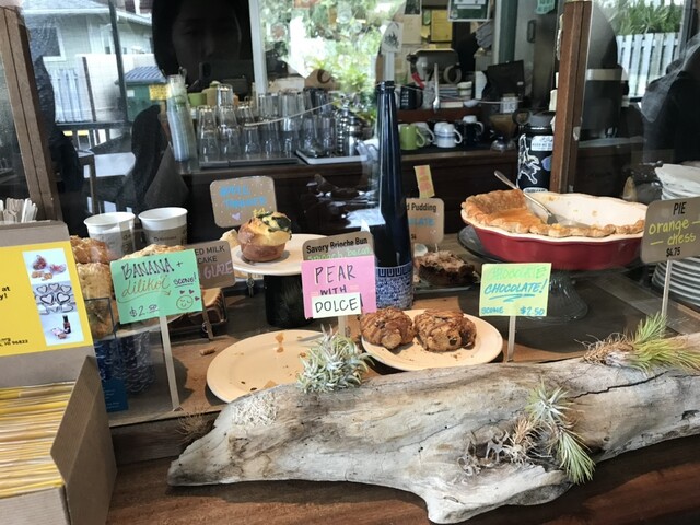 ローカル感満載の気持ちのいい屋外カフェでアイスコーヒー5ドル、スコーン4ドル