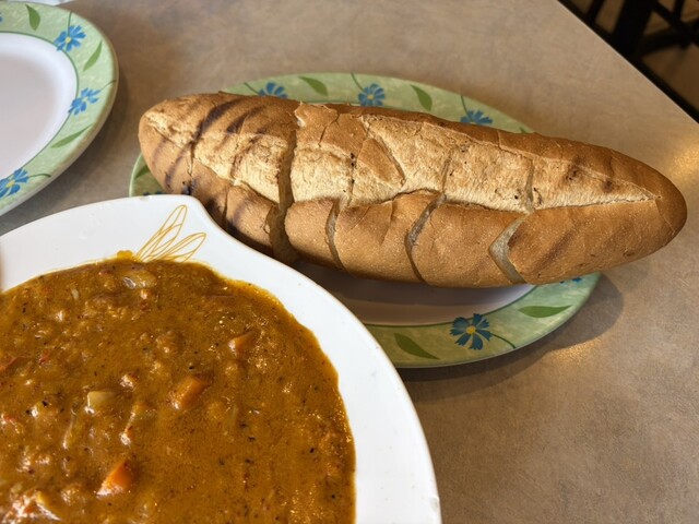 蟹の解し身がちゃんとカレーに鎮座し、殻の処理済みのため手も汚さず、ひたすらスプーンでライスやパンにつけて食べるのみ。