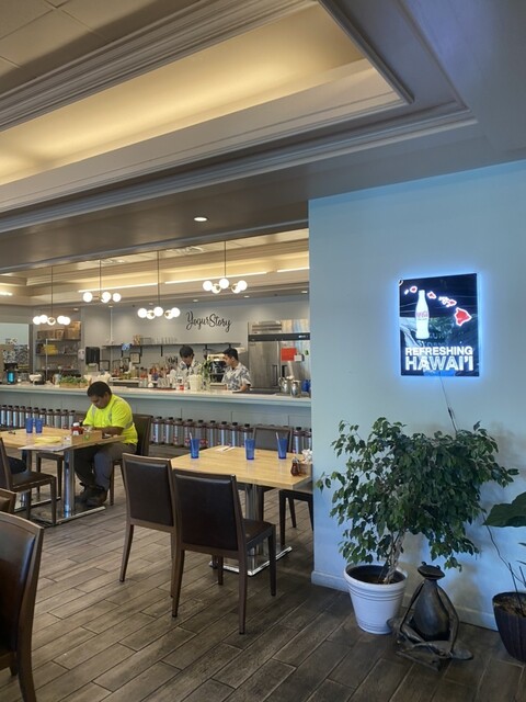 アラモアナ・センター山側のケアモク通りに位置する「ヨーグル・ストーリー」。広々とした開放的な空間、自然光が入る大きな窓、そしてとびっきりモダンなインテリア。今までになかったオシャレなカフェはいつもローカルで賑わっています。おすすめは午前8時から午後5時までサーブされているブランチメニュー。お野菜たっぷりのサンタ・モニカ・エッグ・べネディクトや、プライムリブのロコモコ、そしてファット・ピッグ(太ったブタちゃん)と呼ばれる絶品ポーク・フライド・ライスなど、通常のカフェとは一味違ったメニューを楽しめます。午後5時から9時30分までのディナーメニューも、パスタやピザ、ステーキなどレストラン顔負けの品揃え。美しいプレゼンテーションのワッフルや、ツイストが効いたププメニュー、夜9時からのハッピーアワーも見逃せません。日中はカフェ、夜はバーに変身するヨーグル・ストーリーでとっておきのひとときをお過ごしください。 |