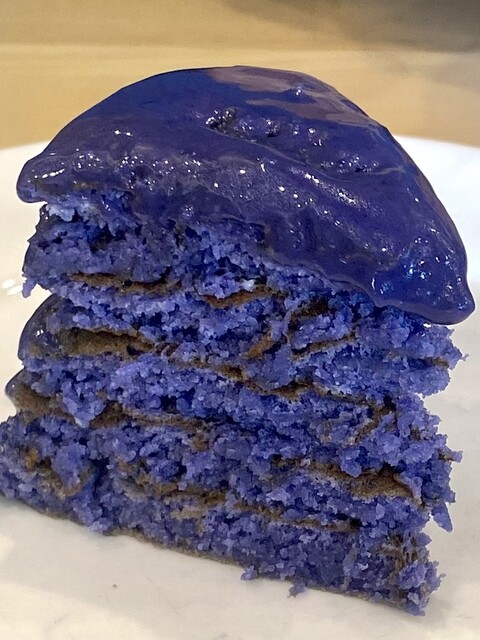 ウベ(紫芋)の天然の紫色のソースは、想像よりも甘くなく、見た目にそぐわず、けっこう美味しい。