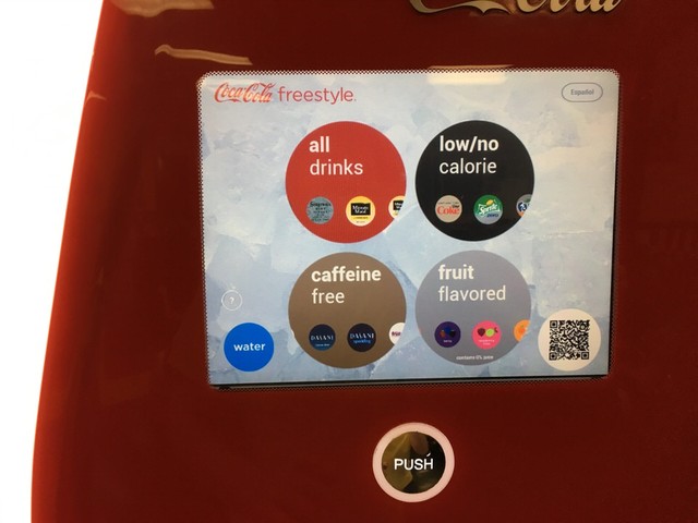 最初の画面では、「alldrinks(全種類)」「low/nocalorie(低カロリー/ゼロカロリー)」「caffeinefree(カフェインフリー)」「fruitflavored(フルーツフレーバー)」の4つのカテゴリから好きなものを選択し、画面にタッチします。