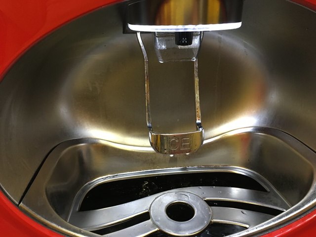 まずはそそぎ口についているレバーを押して、コップに氷を注ぎます。