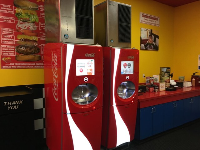 飲み放題のドリンクバー席を確保したらドリンクを取りに行きます。マクドナルドのようなアメリカのファーストフード店と同じにようにテディーズもセルフサービスのドリンクバーで飲み放題になっています。
