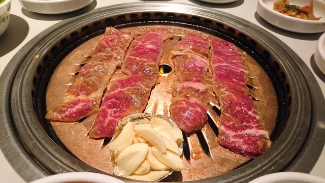 さて、ランチでも訪れたことがありまして、コンビネーションで骨付きカルビの輪切りタイプのものと冷麺で$16ほどでした。ランチも悪くはないですけど、ここはやっぱり夜の利用がお勧めです。