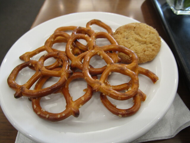 今回利用したのは出発ゲートの近くにある本館の方で、搭乗すると機内食が出るので、飲み物と軽食のみにしました。