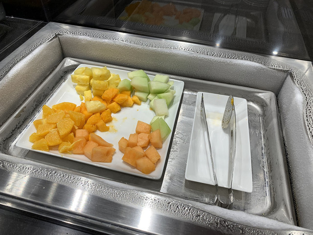 豚汁、鶏の唐揚げ、ラタトゥイユ、カットフルーツ、パイナップルケーキなど。
