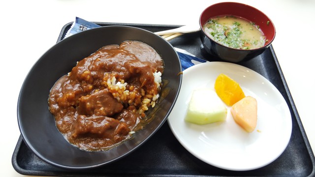 ビュッフェだと皆具沢山にしようとルーよりも具の比率を多くしていくので、最初は具沢山なんだが、ルーが少なくなってきた後半は具がほとんどないような状態になる。成田空港の出国時はまさにその状態で肉がなかったが、今回は満杯に近い状態だったので、ごろっと入った牛肉を楽しめることができた。