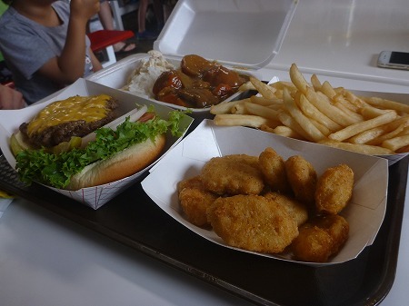 ハンバーガー、ナゲット、フレンチフライ、ポークカレーを頂きました。