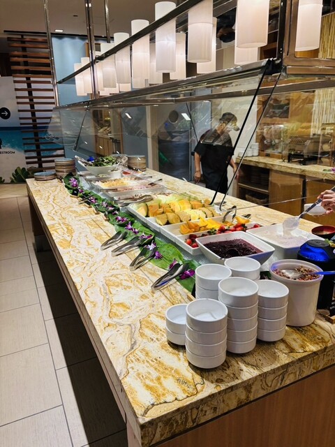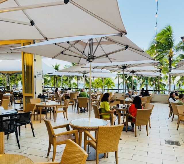 素晴らしい雰囲気と目の前のワイキキビーチを眺めながら皆で食べる朝食ビュッフェは超最高です。