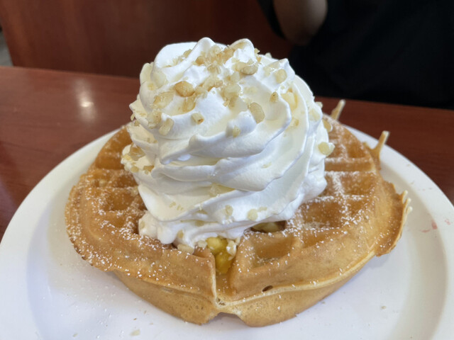 朝6時から並んでます。ワイキキの朝は早いです。名前を書いてから30.40分待ちです。ジュースがハワイらしくて美味しかったです。コーヒーも飲み放題です。パンケーキのクリームもそんなに甘くなく食べやすい甘...