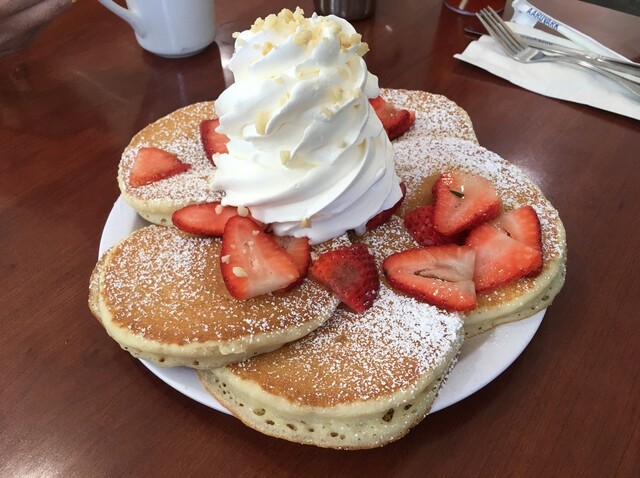 パンケーキは定番の『ストロベリーにホイップクリームとマカダミアナッツ』を選択。